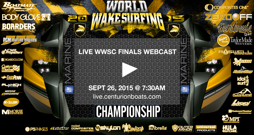 The LIVE webcast can be found at http://live.centurionboats.com. Fans of wake surfing are invited to watch the competition’s finals on Saturday, September 26 from 7:30am until 5:00pm PDT and then to join the LIVE webcast of the Annual Awards Gala at 7:00pm PDT where there will be sixteen new world champions crowned and a historic purse of $100,000 awarded to the professional divisions.