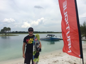 ORLANDO, FLA (April 19, 2015) — Team Nautique athlete Aliaksei Zharnsek set a new pending Tricks World Record of 12,740 points behind the Ski Nautique 200 during the Isles Trick Time tournament at Isles of Lake Hancock in Winter Garden, FL.