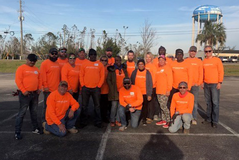 A team of 28 Nautique and Correct Craft employees visited four different home sites in Panama City to help clean up yards and remove damaged items in homes. The team brought tents, medical supplies, cleaning supplies and yard tools to donate to those in need through a local church.