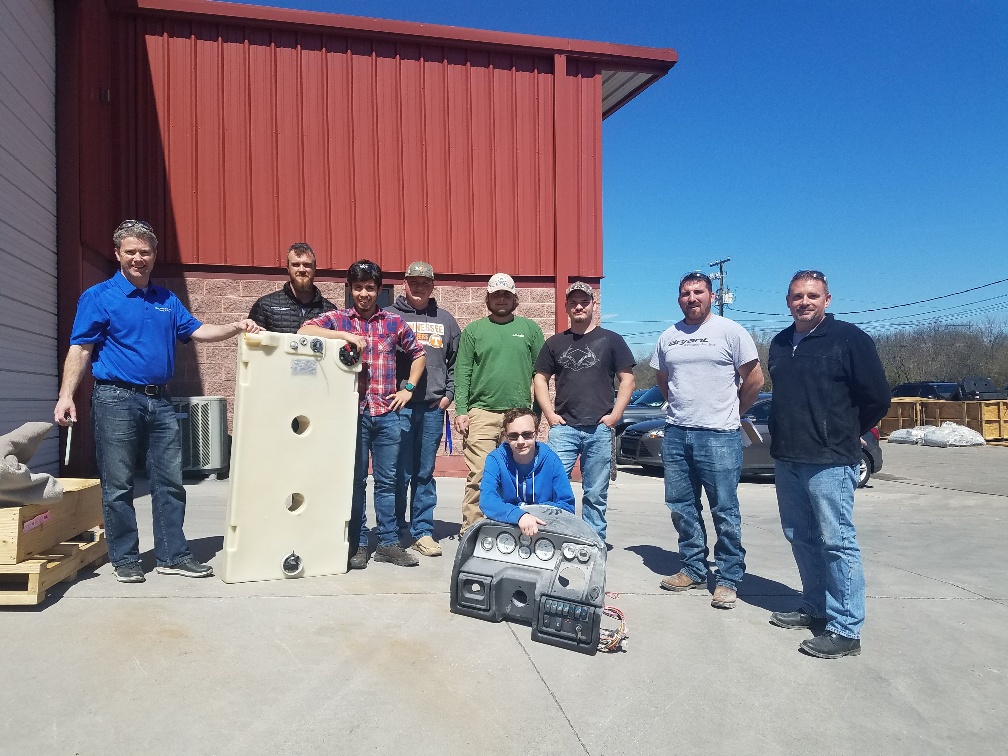 The students have been tasked with designing and building an “amphibious vehicle” that will operate on both road and water. Starting with a 14-foot fiberglass hull and deck, they now have attached a chassis, axles and drive system. In addition to hosting the students Correct Craft’s Tennessee operation donated components such as steering, gauges, grab handles, dashes, lighting, seating, horn, audio, canvas, hardware and more to advance the team’s efforts.