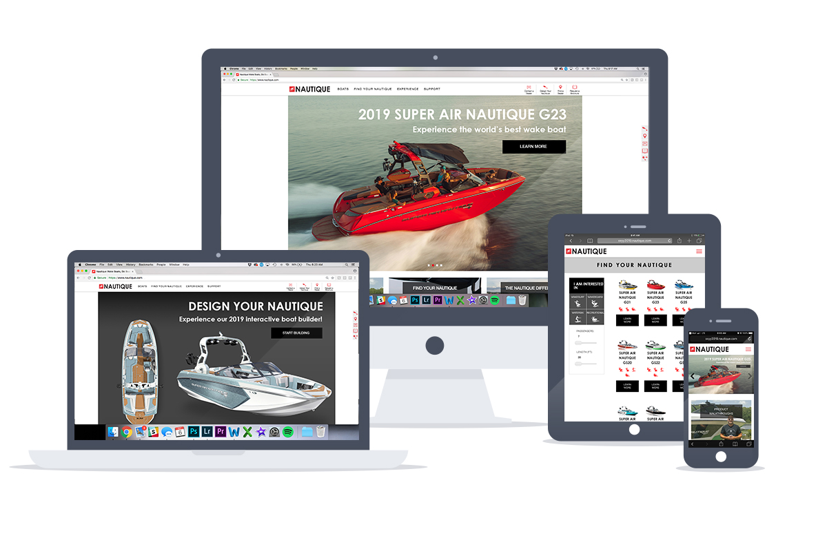viewed on all desktop and mobile devices, the fully responsive Nautique.com website is here to provide users with easy navigation tools to allow them to gather all the information they need about the 2019 models. From our in-depth walk-through videos to the latest innovations, the new Nautique.com provides users with anything and everything they want to know about the 2019 Nautique line. An interactive boat builder called “Design Your Nautique” allows consumers to customize the boat of their dreams, while a tool called “Find Your Nautique” can provide insight on the best boat model for someone’s needs.