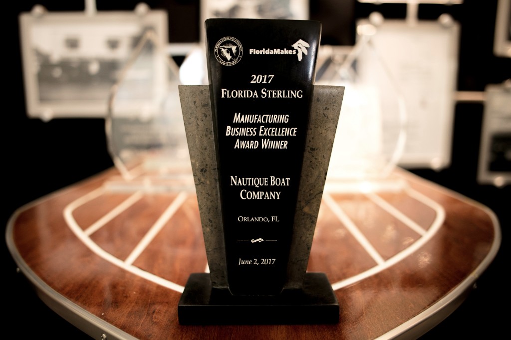 ORLANDO, FL (June 5, 2017) – This week, Nautique Boat Company was extremely proud to accept the 2017 Florida Sterling Manufacturing Business Excellence Award in the category of companies with more than 200 employees. The Sterling Awards are presented each year by the Governor of Florida to high-performing, role-model organizations, both private and public, who demonstrate superior management approaches and role model results. Nautique achieved this based on six criteria: leadership, strategic planning, customer and market focus, measurement, analysis and knowledge management, workforce and operations. Nautique was thrilled to take home this prestigious award on Friday, June 2nd, during the award ceremony held in Orlando, Florida.