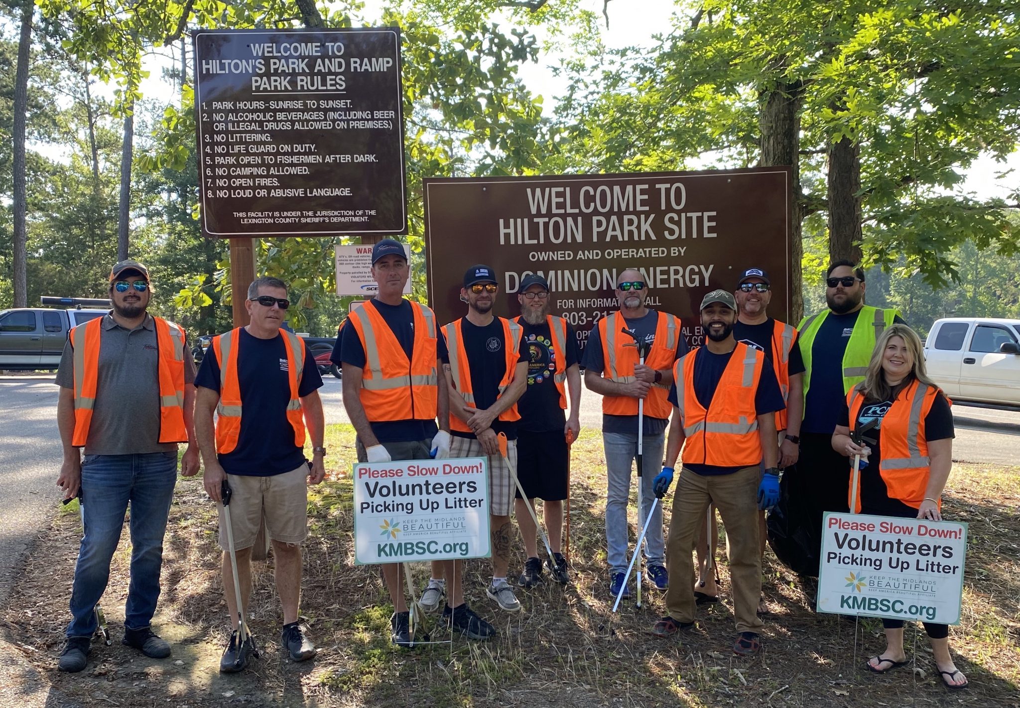 Eleven Pleasurecraft employees spent the morning cleaning up the Hilton Recreation Area and boat ramp, and will continue to maintain the cleanliness of the park several times a year, including the Lake Murray Cleanup Day each Fall where Keep the Midlands beautiful organizes hundreds of volunteers to clean every park, marina, boat ramp, and island on Lake Murray.