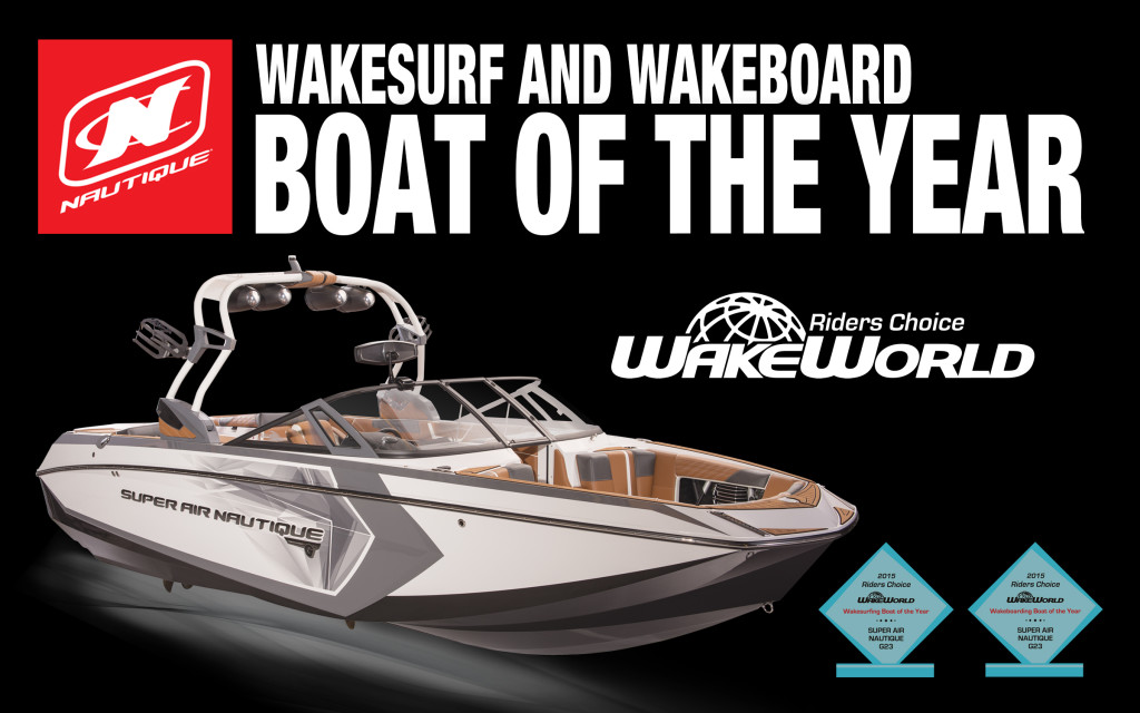 ORLANDO, FLA (September 28, 2015) – Nautique was honored today with yet another coveted Industry Award for the Super Air Nautique G23. This year, the G23 was honored by being awarded the WakeWorld’s Riders Choice “Wakeboarding Boat of the Year” and WakeWorld’s “Wakesurfing Boat of the Year,” for two years in a row.